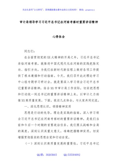 / 审计局领导学习习近平总书记在河南考察时重要讲话精神心得体会