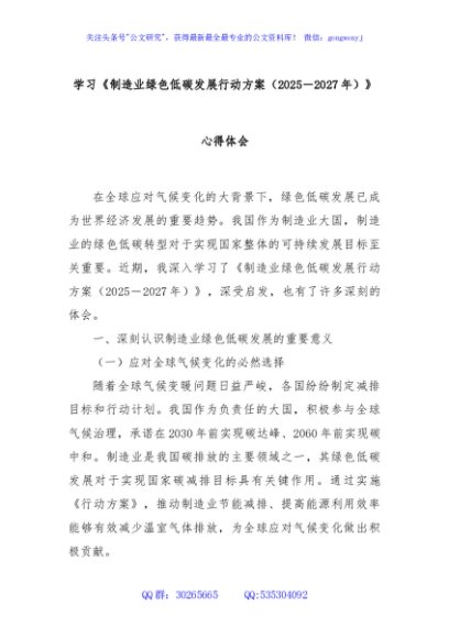 / 学习《制造业绿色低碳发展行动方案(2025-2027年)》心得体会