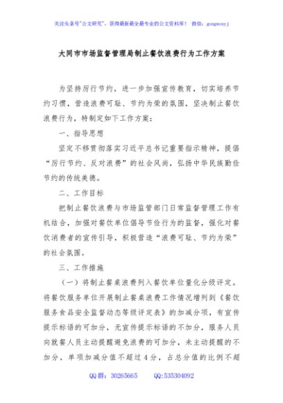 / 大同市市场监督管理局制止餐饮浪费行为工作方案