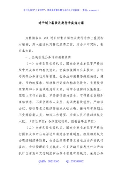 / 对于制止餐饮浪费行为实施方案