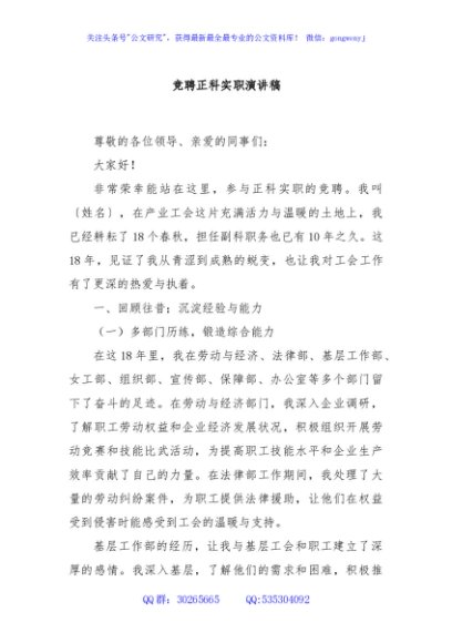 / 竞聘正科实职演讲稿