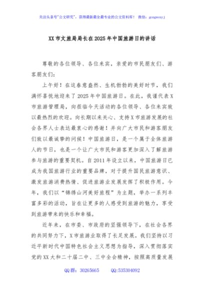 / XX市文旅局局长在2025年中国旅游日的讲话