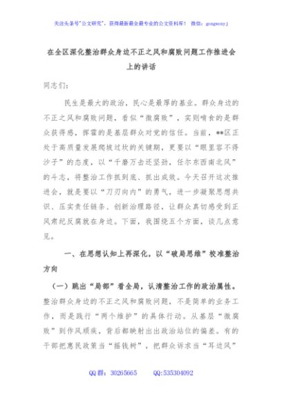 / 在全区深化整治群众身边不正之风和腐败问题工作推进会上的讲话