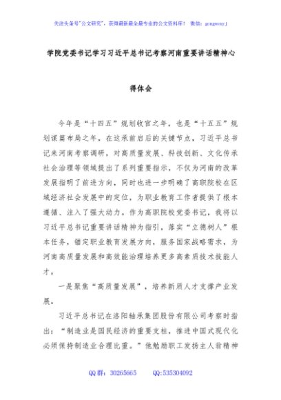 / 学院党委书记学习习近平总书记考察河南重要讲话精神心得体会