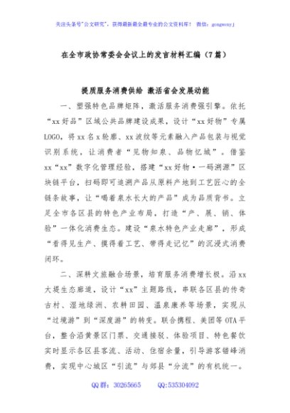 / (7篇)在全市政协常委会会议上的发言材料汇编