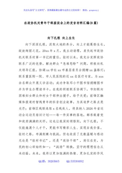 / (8篇)在政协机关青年干部座谈会上的发言材料汇编