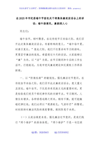 / 在2025年市纪委端午节前机关干部集体廉政谈话会上的讲话:端午扬清风,廉韵润人心