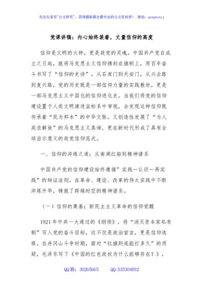 / 党课讲稿:内心始终装着,丈量信仰的高度