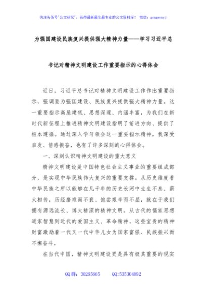 / 为强国建设民族复兴提供强大精神力量——学习总书记对精神文明建设工作重要指示的心得体会