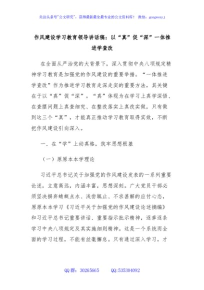 / 作风建设学习教育领导讲话稿:以“真”促“深”一体推进学查改