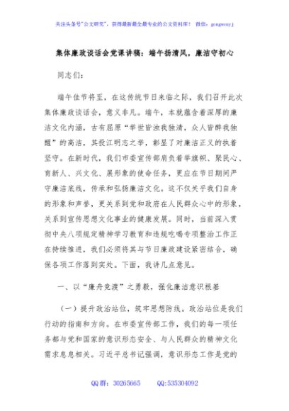 / 集体廉政谈话会党课讲稿:端午扬清风,廉洁守初心
