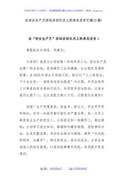 / (3篇)在安全生产月活动启动仪式上的表态发言汇编