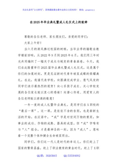 / 在2025年毕业典礼暨成人礼仪式上的致辞