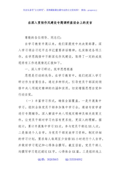 / 在深入贯彻作风建设专题调研座谈会上的发言