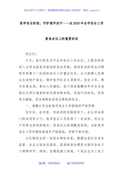 / 筑牢安全防线,守护城市安宁——在2025年全市安全工作紧急会议上的重要讲话