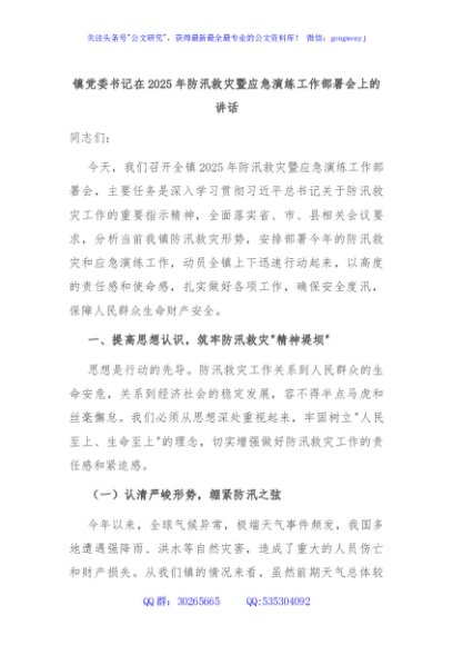 / 镇党委书记在2025年防汛救灾暨应急演练工作部署会上的讲话