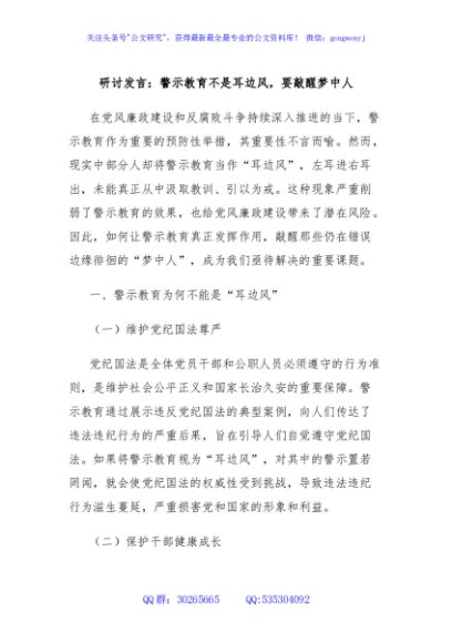 / 研讨发言:警示教育不是耳边风,要敲醒梦中人