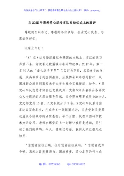 / 在2025年高考爱心送考车队启动仪式上的致辞