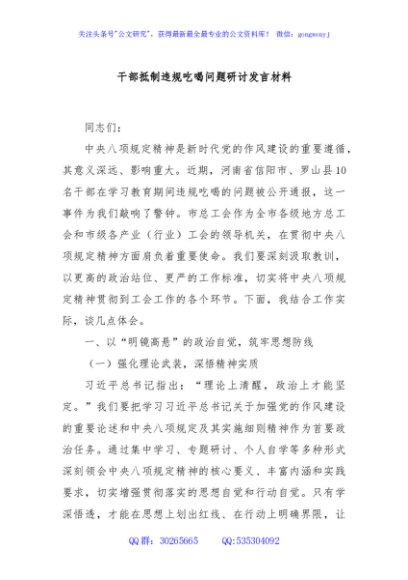 / 干部抵制违规吃喝问题研讨发言材料