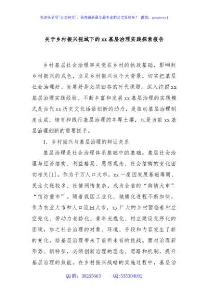 / 关于乡村振兴视域下的xx基层治理实践探索报告