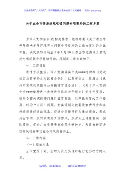 / 关于在全市开展违规吃喝问题专项整治的工作方案