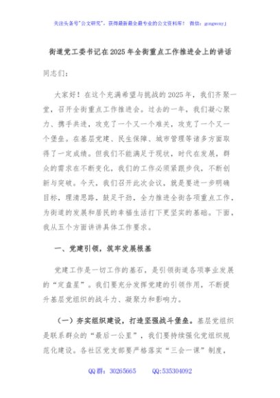 / 街道党工委书记在2025年全街重点工作推进会上的讲话
