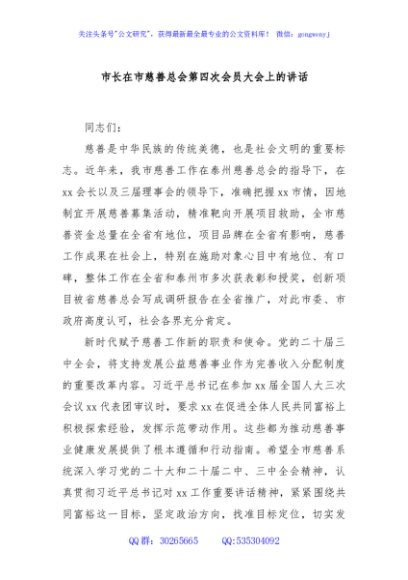/ 市长在市慈善总会第四次会员大会上的讲话