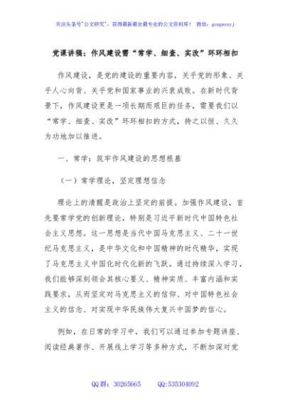 / 党课讲稿:作风建设需“常学、细查、实改”环环相扣