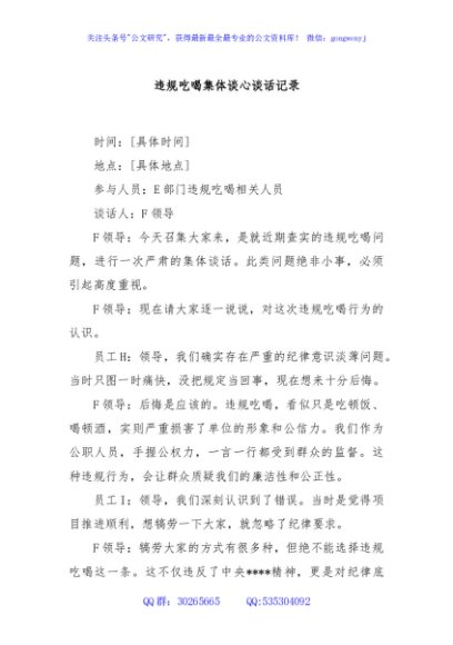 / 违规吃喝集体谈心谈话记录