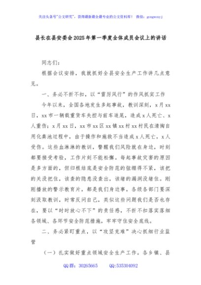 / 县长在县安委会2025年第一季度全体成员会议上的讲话