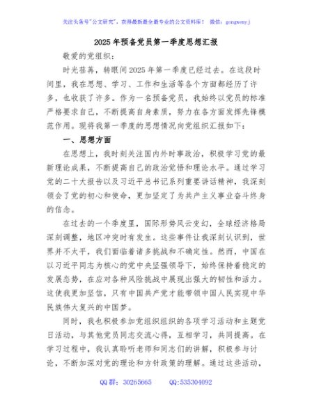 / 2025年预备党员第一、二季度思想汇报