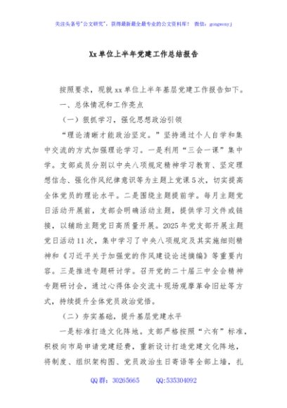 / Xx单位上半年党建工作总结报告
