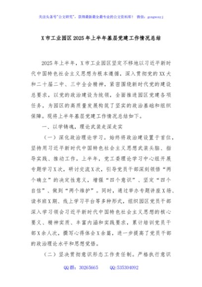 / X市工业园区2025年上半年基层党建工作情况总结