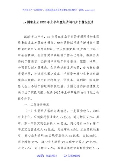 / xx国有企业2025年上半年度经济运行分析情况报告