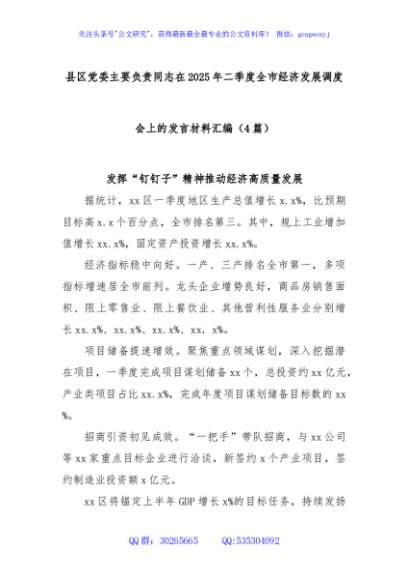 / (4篇)县区党委主要负责同志在2025年二季度全市经济发展调度会上的发言材料汇编