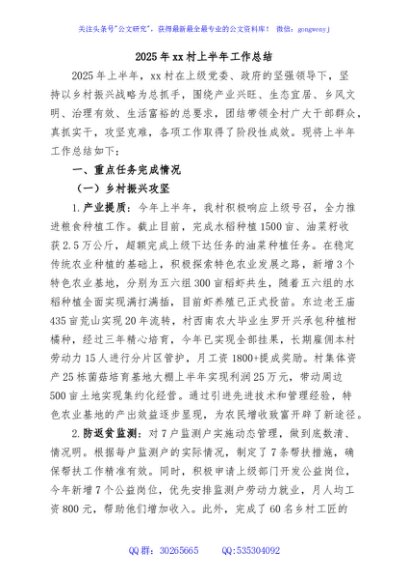 / 15.2025年xx村上半年工作总结