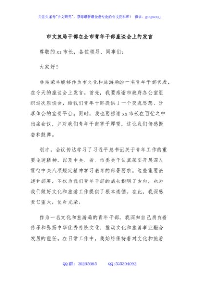 / 市文旅局干部在全市青年干部座谈会上的发言