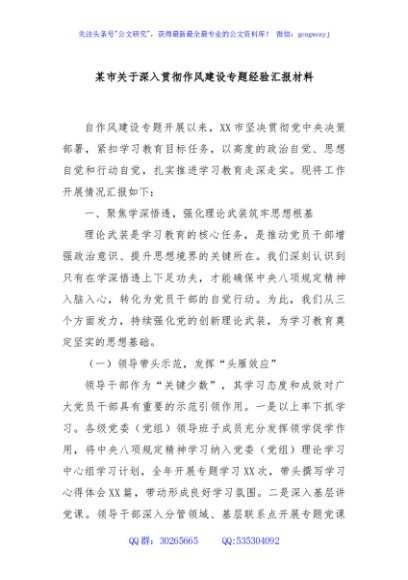 / 某市关于深入贯彻作风建设专题经验汇报材料