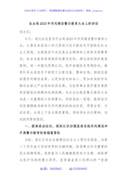 / 在全局2025年作风建设警示教育大会上的讲话