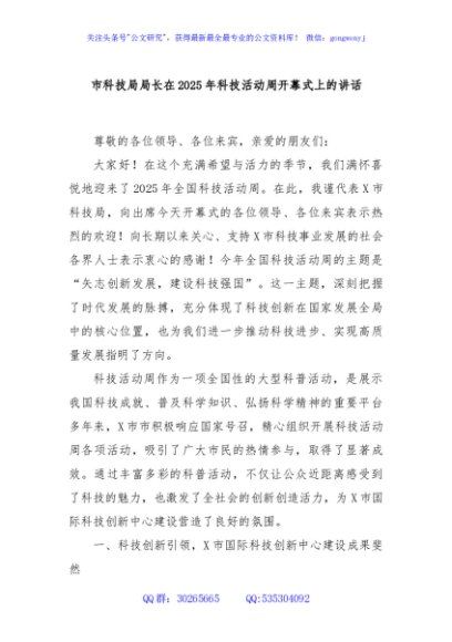 / 市科技局局长在2025年科技活动周开幕式上的讲话
