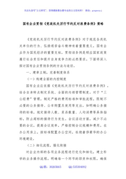 / 国有企业贯彻《党政机关厉行节约反对浪费条例》策略
