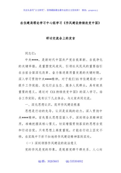 / 在住建局理论学习中心组学习《作风建设持续改变中国》研讨交流会上的发言