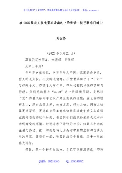 / 在2025届成人仪式暨毕业典礼上的讲话:悦己跃龙门越山阅世界