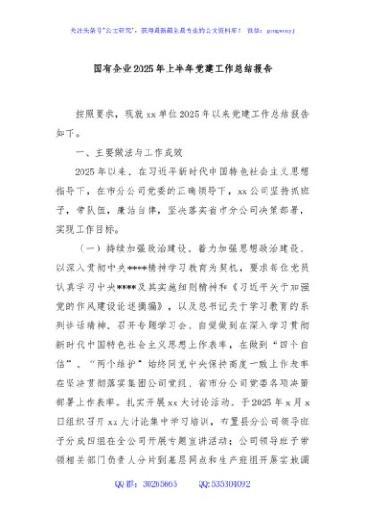 / 国有企业2025年上半年党建工作总结报告
