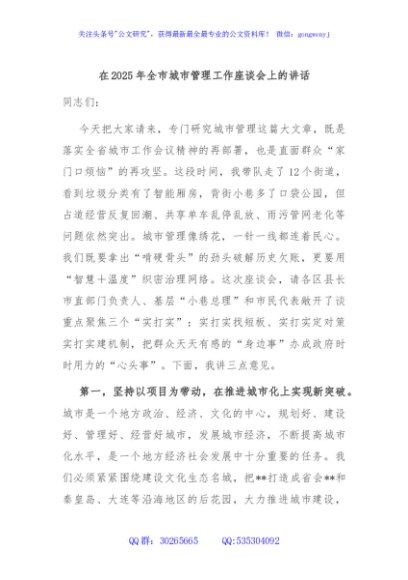 / 在2025年全市城市管理工作座谈会上的讲话