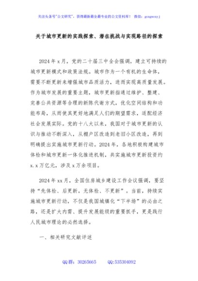 关于城市更新的实践探索、潜在挑战与实现路径的探索
