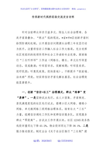 / 传承新时代枫桥经验交流发言材料