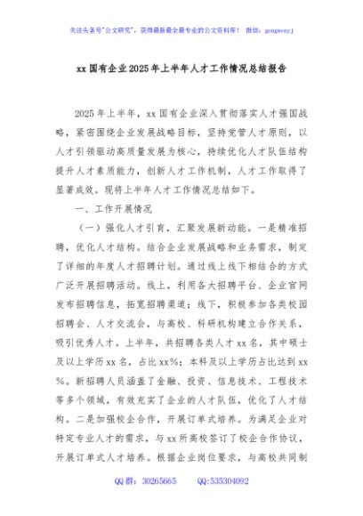 / xx国有企业2025年上半年人才工作情况总结报告