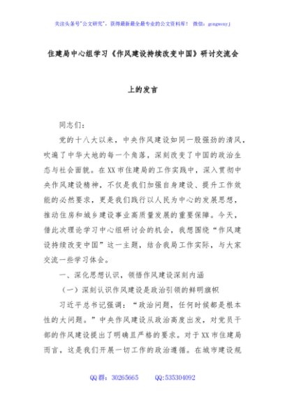 / 住建局中心组学习《作风建设持续改变中国》研讨交流会上的发言