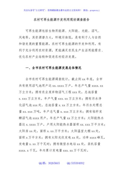 农村可再生能源开发利用现状调查报告